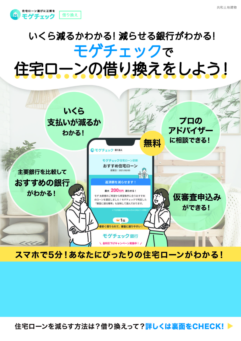 借り換えにかかる各種の諸費用(保証料やローン媒介手数料)はローンに含めて借りれるよう交渉しますので、借り換え時にまとまった現金を用意して頂く必要はありません。
